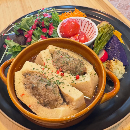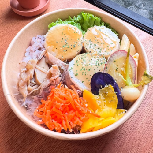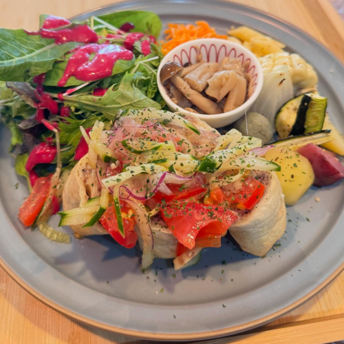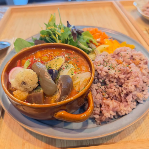 BONAぺてぃは、旬の野菜をたっぷり使った“からだにやさしいランチ”が楽しめるカフェです。週替わりランチやヴィーガンスパイスカレー、手づくりデリ盛り合わせなど、どれも食材の美味しさを大切にした数量限定メニューをご用意しています。